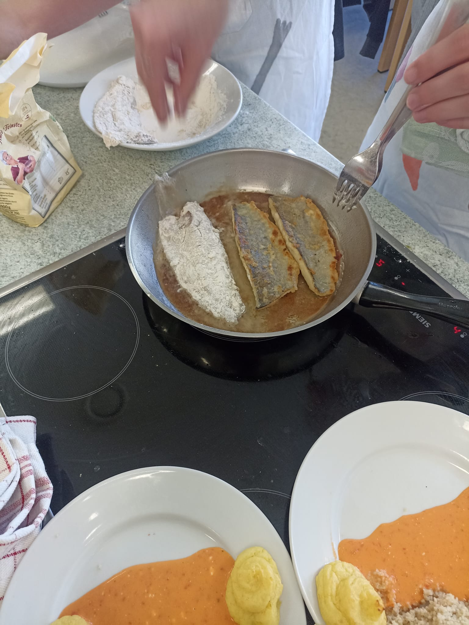 Familie Wallner verwöhnte die 3. Klasse mit frischem Saibling. Die Schüler/innen kochten folgendes Menü: