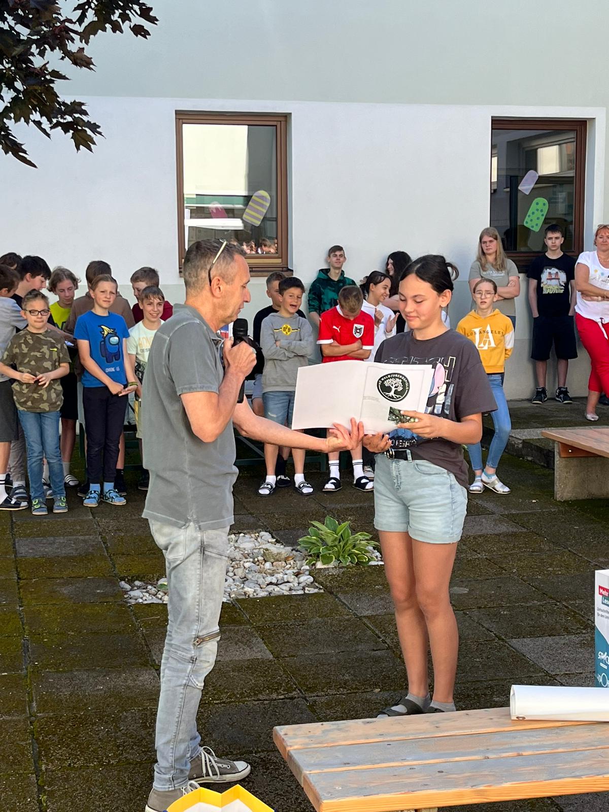 Mit einem mega Schulschlussfest, organisiert von der 3A und ihrem engagierten Klassenvorstand, wurde das Schuljahr gebührend verabschiedet. Es war ein gelungenes Fest mit hervorragendes Verköstigung, einer lustigen Schultheatereinlage, einem tollen Tanz der 1. Klasse und einer spannenden Tombola. Besonders rührend war die Verabschiedung der 4. Klasse, die ihrem Klassenvorstand ein selbst geschriebenes Gedicht vorgetragen hat – da blieb kein Auge trocken.