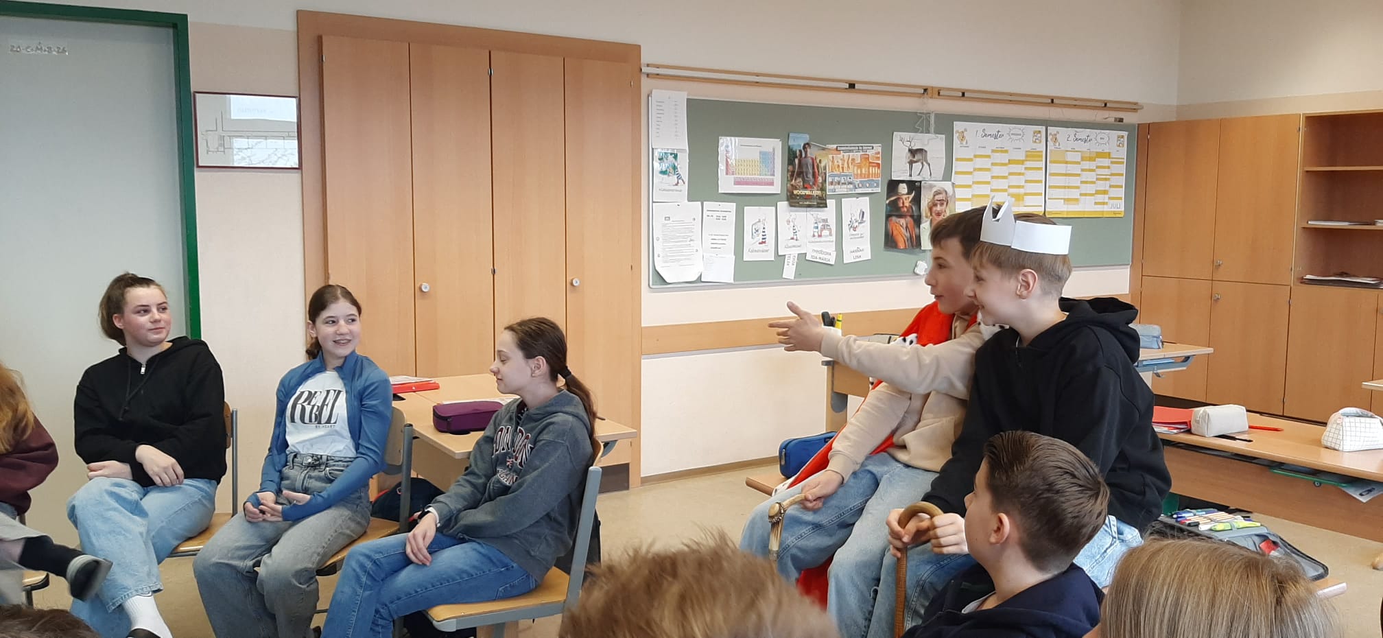 Im Geschichtsunterricht erweckten die Schülerinnen und Schüler der dritten Klassen die französische Ständegesellschaft unter Ludwig XIV. spielerisch zum Leben. In Rollenspielen übernahmen sie die Rollen von König, Klerus, Adel sowie Bauern und erlebten so die ungleiche Verteilung von Macht, Rechten und Alltag. Die Kinder hatten großen Spaß, ihre Rollen auszuprobieren, und verstanden zugleich besser die Gesellschaft der damaligen Zeit.