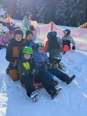 Schnee, Pistengaudi und Hüttenschmankerl - unsere Skitage waren ein Hit! Die 2. und 3. Klassen tauschten das Klassenzimmer gegen die Skipiste und verbrachten fünf sportliche Wintertage im Schnee. Am ersten Tag ging´s auf die Feitsch, danach wurden für vier Tage lang die Hänge am Stuhleck unsicher gemacht. Von blauen Abfahrten bis hin zu steilen schwarzen Pisten wurde alles ausprobiert und wer mal kurz im Schnee landete, sorgte für den nächsten Lachanfall in der Gruppe. Beim täglichen Einkehrschwung in der Hütte wurden hungrige Skifahrer und Skifahrerinnen mit warmen Mahlzeiten wieder fit gemacht, bevor es gut gelaunt wieder auf die Piste ging. Der letzte Tag stand ganz im Zeichen des Rodelspaßes und Après-Ski-Stimmung: natürlich jugendfrei mit Skiwasser und heißer Schokolade, aber garantiert nicht weniger lustig.