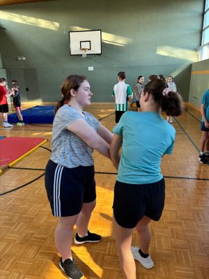 Nachdem im Dezember im Zuge des Projektes die Teambuilding-Einheit erfolgreich absolviert worden war, standen im 2. Teil die Selbstbehauptung und Konfliktbewältigung auf dem Programm. Ziel war es, den Schülern und Schülerinnen zu zeigen, wie sie in unangenehmen Situationen reagieren und Konflikte frühzeitig entschärfen können. Durch verschiedene Übungen lernten die Kinder, ihre persönliche Distanz wahrzunehmen, klare Grenzen zu setzen und selbstbewusst „Stopp“ zu sagen. Außerdem wurde geübt, wie man stabil steht, Abstand schafft und sich im Notfall aus einfachen Griffen befreien kann. Der Workshop verband Theorie und Praxis auf anschauliche Weise und stärkte das Selbstbewusstsein der Kinder. Dies soll ihnen mehr Sicherheit im Alltag geben und sie anregen, auf ihre eigenen Grenzen zu achten.
