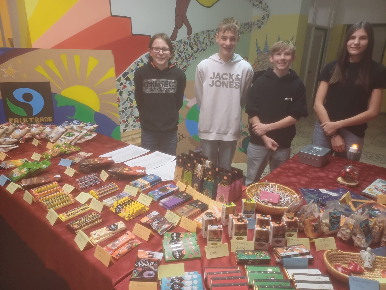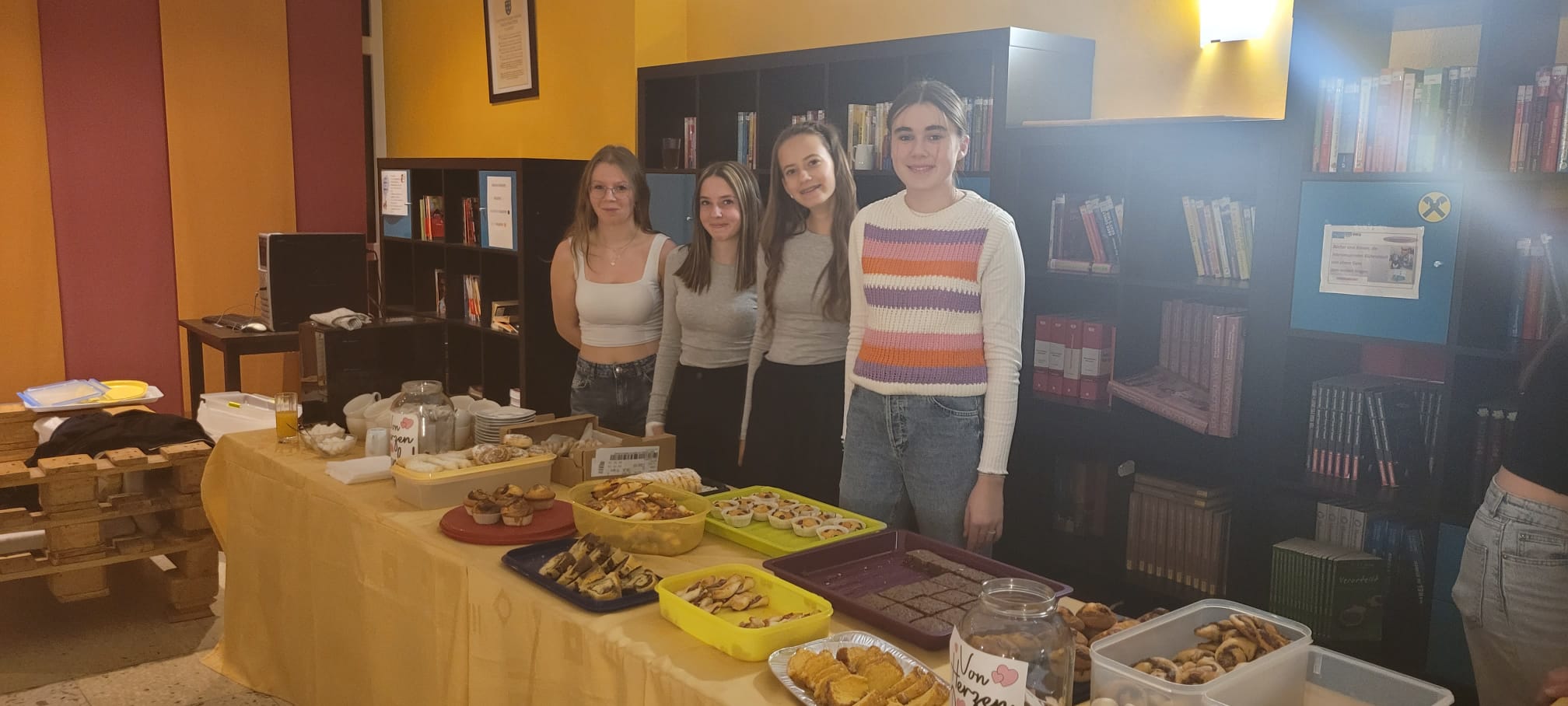 Ein besonderer Dank gilt unseren Schülerinnnen und Schülern der 4A, die mit viel Liebe ein vielfältiges Buffet vorbereitetet haben. Pikantes und süßes Fingerfood sorgte für kulinarische Genüsse. Parallel dazu zeigten die Schüler:innen der 4. Klasse mit einem Fairtrade-Verkauf großes Engagement, bei dem sie nachhaltige Produkte anboten.