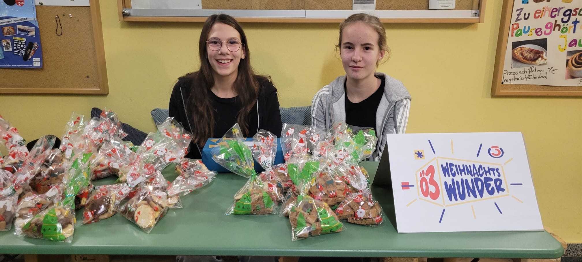 Die 2A und 3A trugen mit einer herzerwärmenden Aktion ebenfalls zum Gelingen des Abends bei: Mit selbstgebackenen Keske, die sie zum Teil im Unterricht mit viel Liebe vorbereitet hatten, sammelten sie Spenden für das diesjährige Ö3-Weihnachtswunder.