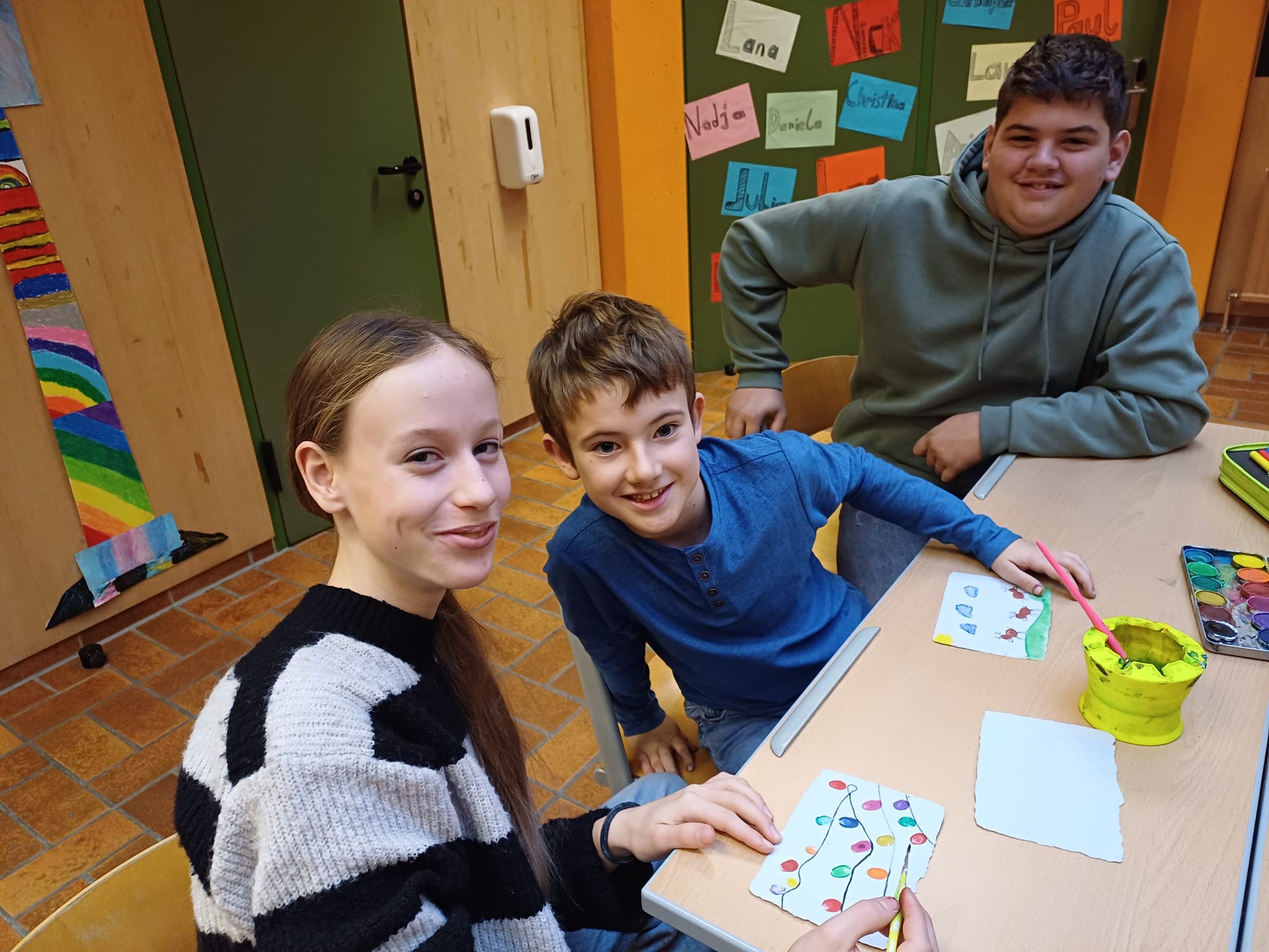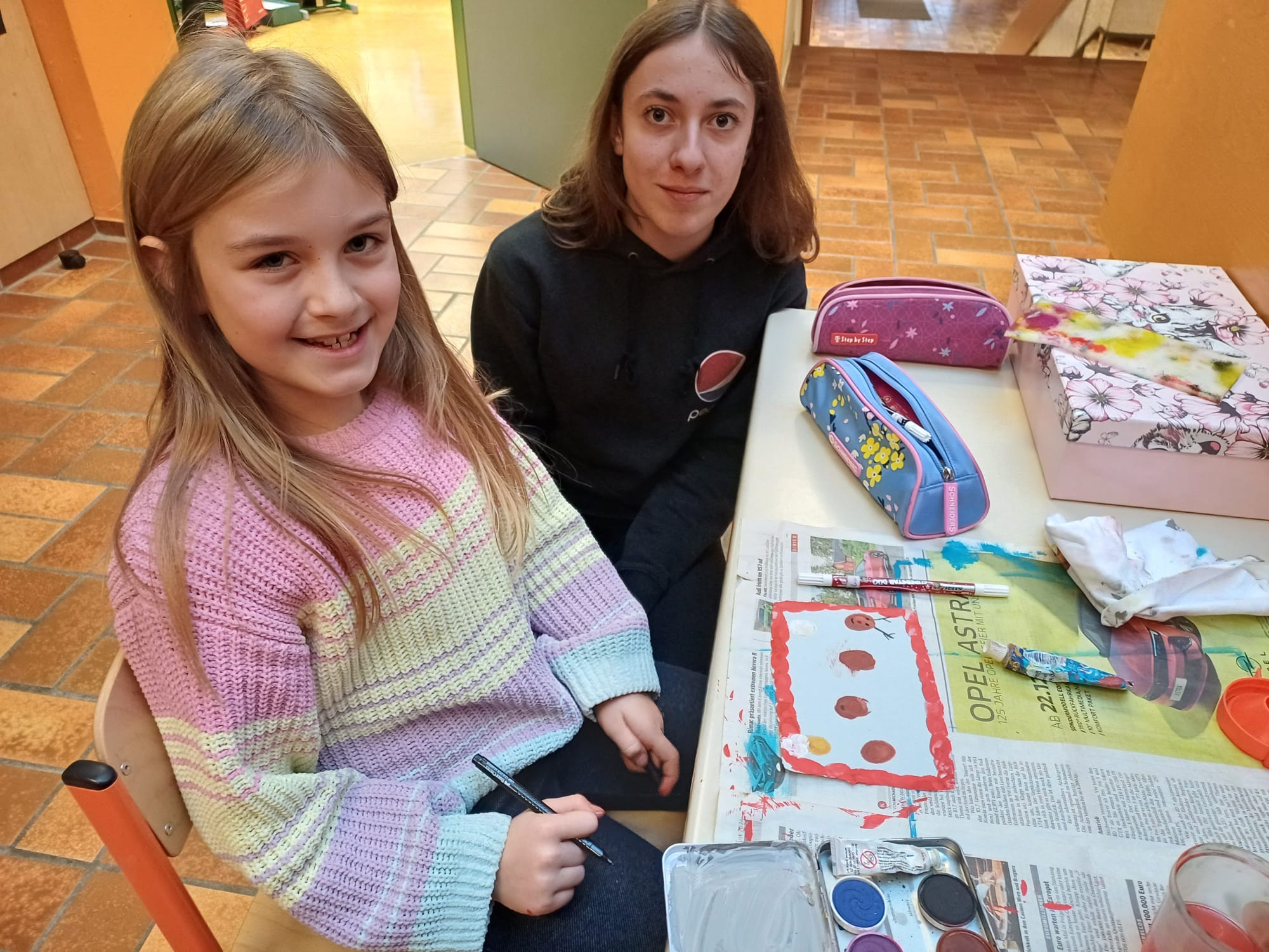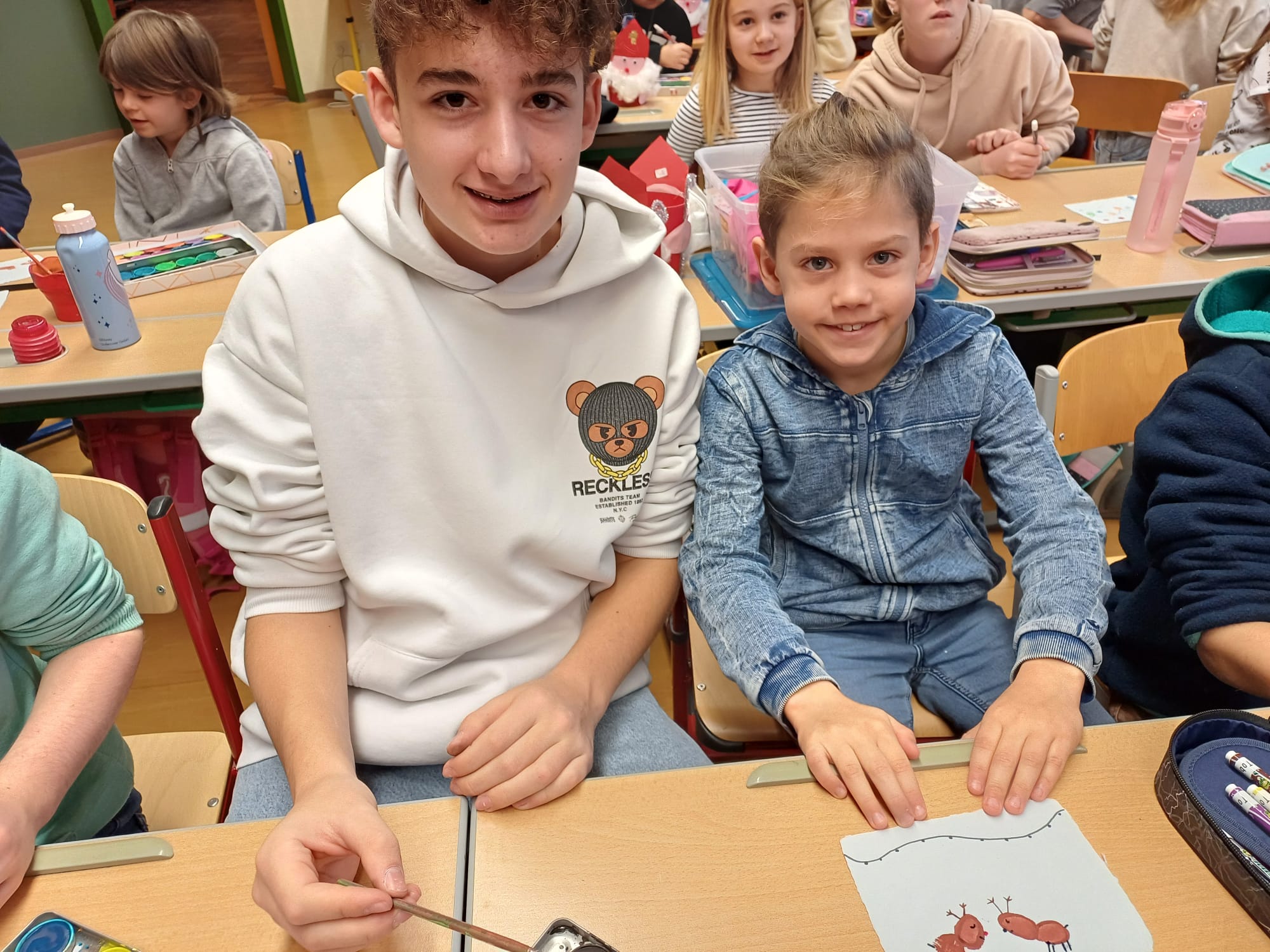 In der Adventzeit gestalteten Firmlinge und Erstkommunionskinder gemeinsam kreative Weihnachtskarten. Die Schüler und Schülerinnen der Mittelschule besuchten hierfür die 2. Klasse der Volksschule - ein schönes Miteinander zwischen Groß und Klein.