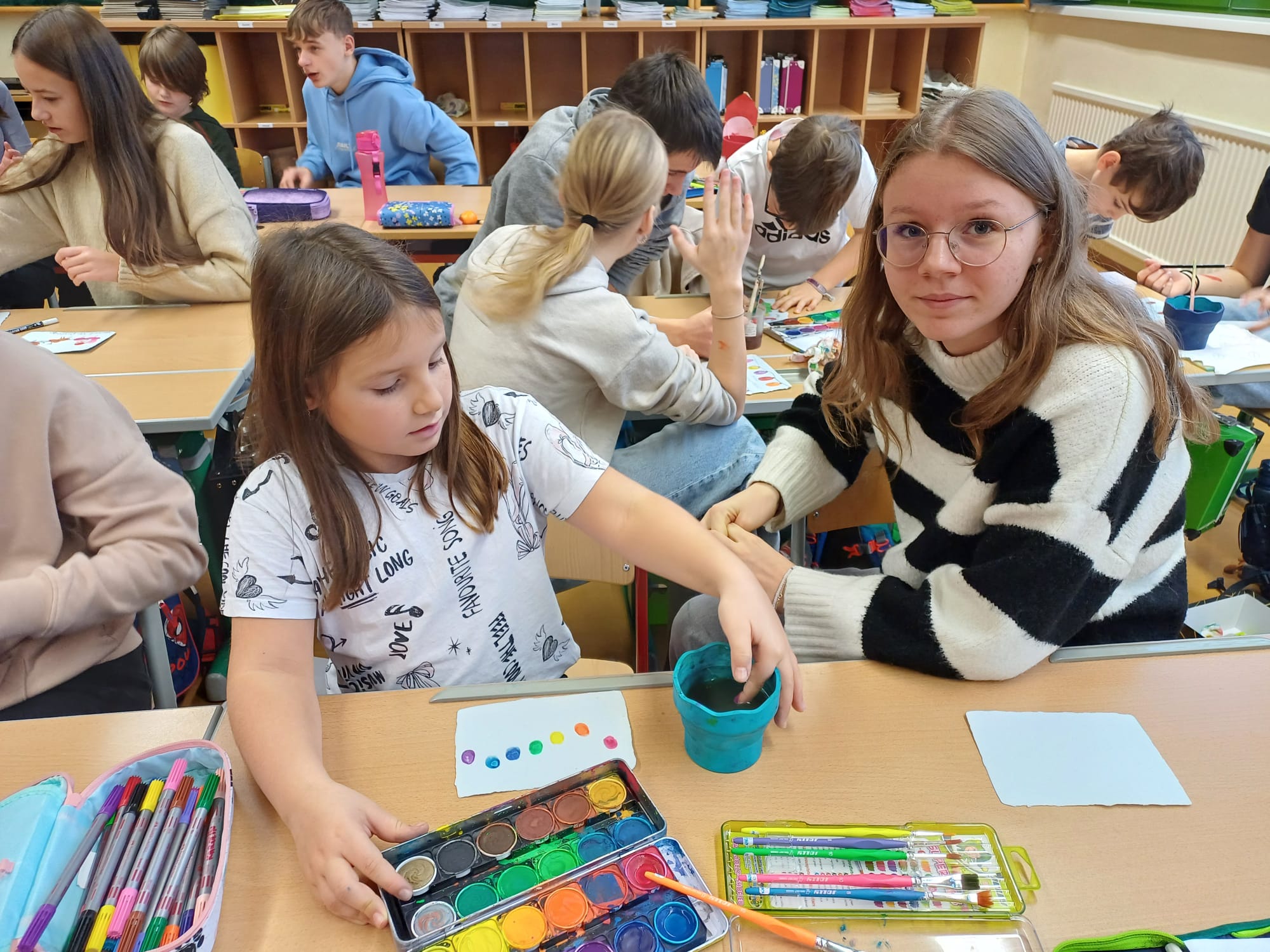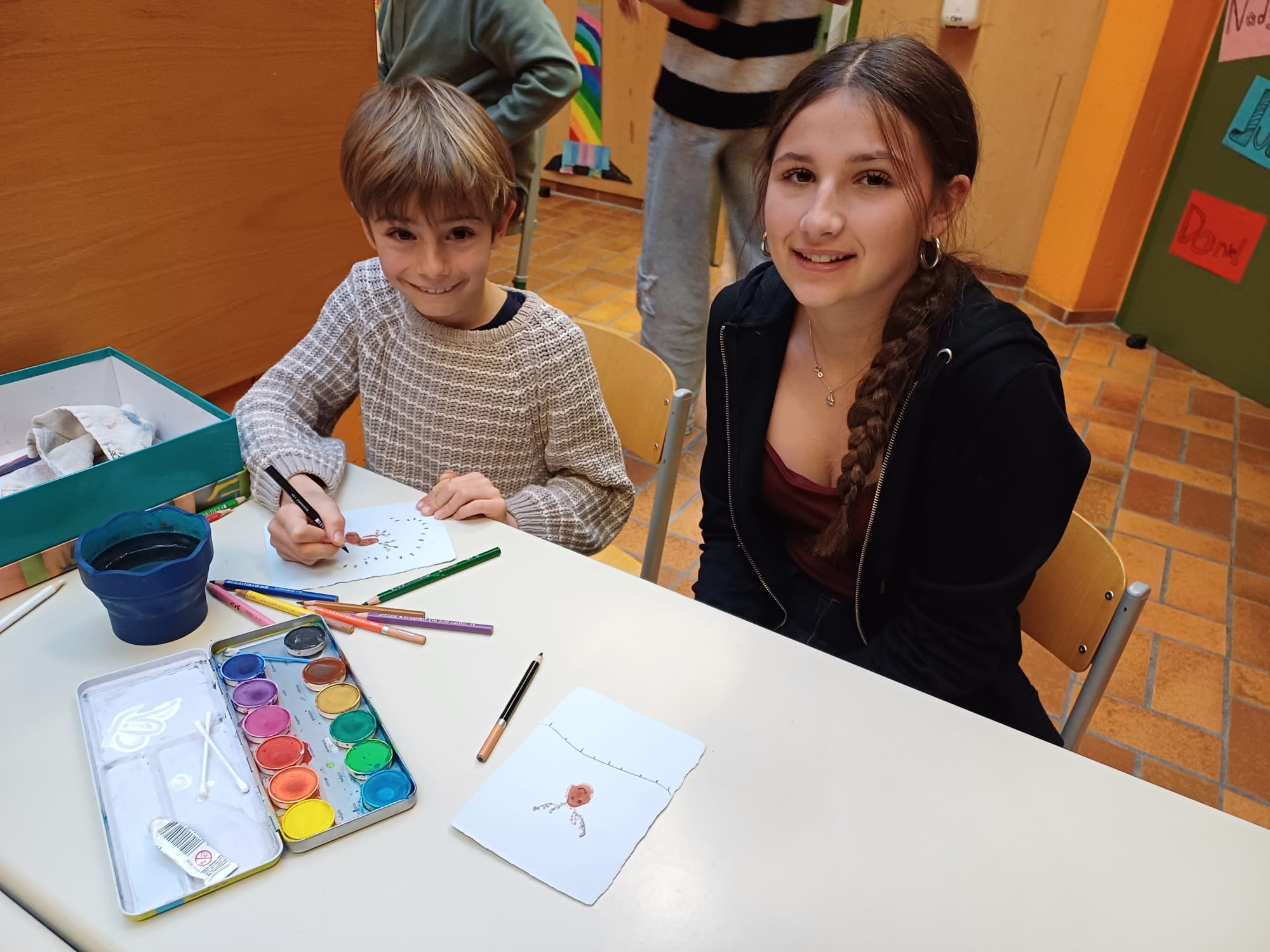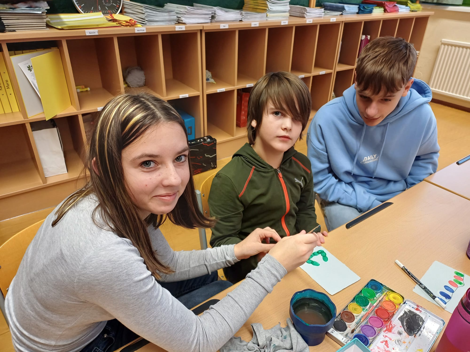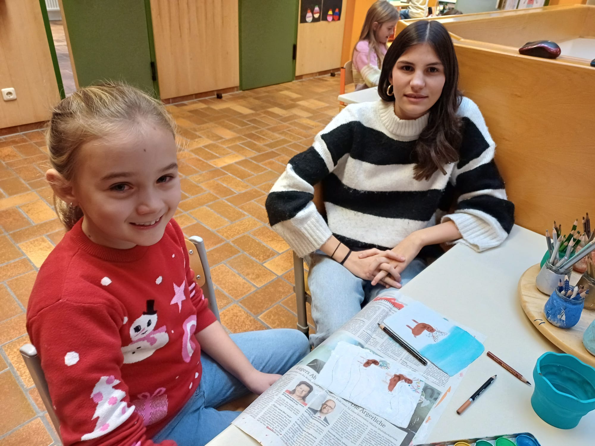 In der Adventzeit gestalteten Firmlinge und Erstkommunionskinder gemeinsam kreative Weihnachtskarten. Die Schüler und Schülerinnen der Mittelschule besuchten hierfür die 2. Klasse der Volksschule - ein schönes Miteinander zwischen Groß und Klein.